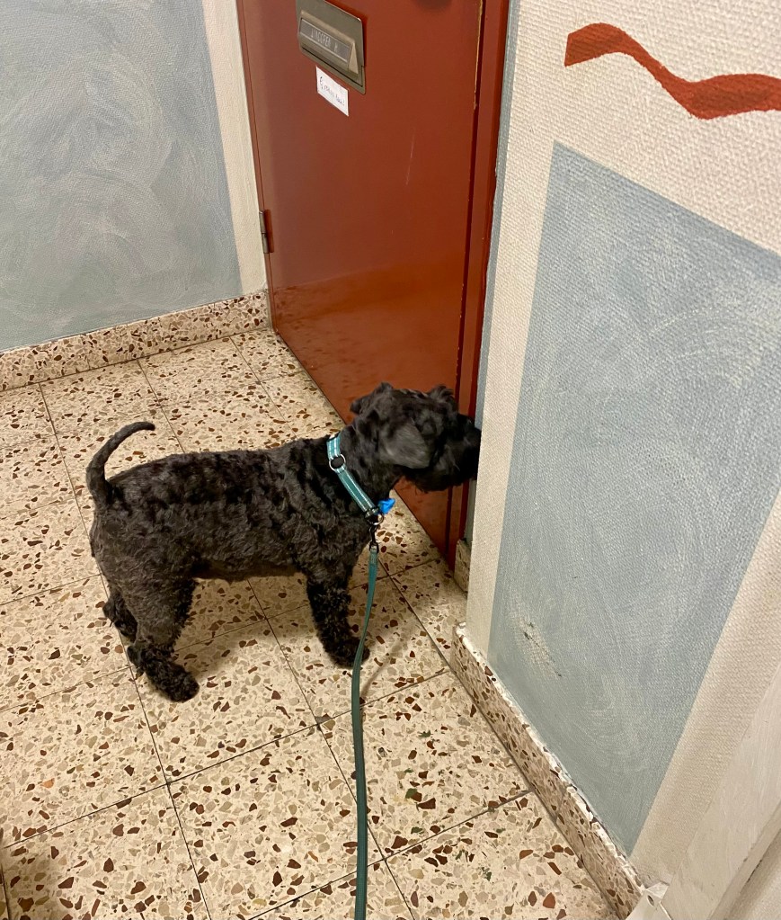 Här i dörren bredvid vår dörr bor våran allra bästa granne. Undrar om Eva är hemma. Sen är det ju det att det osar katt här men jag har inte fått träffat dem än.