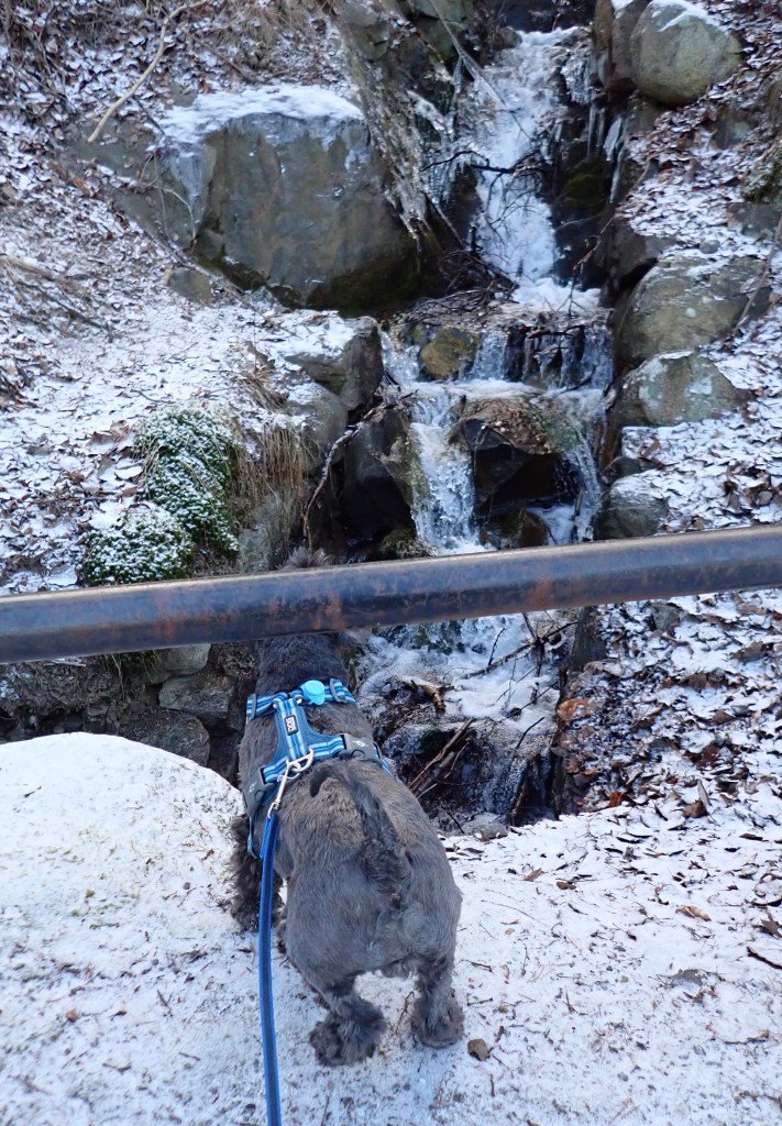 Det går att gå ned här. Snälla matte sa Troy, jag måste få gå ned och bada tassarna. Men det fick han inte.