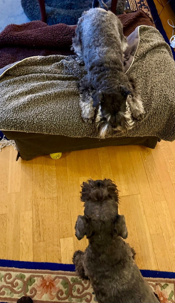 Efter middagen tar vi en herre på täppan lek. Varvat på stora pallen i vardagsrummet för att sen rusa in i sovrummet och hoppa helikopter hopp i sängen. Sen tillbaka till pallen och mattorna far all värdens väg. Matte säger kära någon här stormar hela havet.