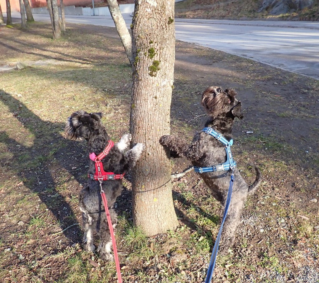 Nu går vi hem, vi har varit ute i 2 timmar så nu är siktet inställt på soffan. Vi har mött lite folk som säger att vi är sååå duktiga på att gå bredvid matte.