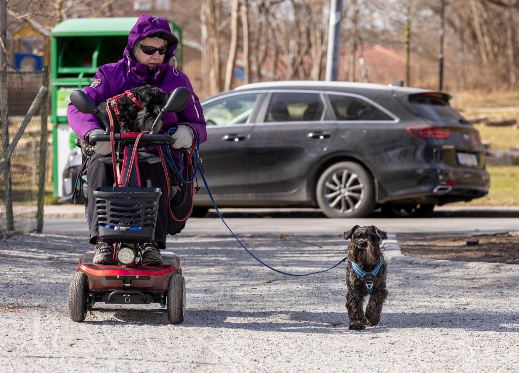 Mattes knän vill inte vara med så då blir det moppoped på långturen. Ganska bekvämt är det om jag får säga det själv. Jag får åka knä på slutet av turen, men Troy han knallar på. Han är väldigt stolt för han får bestämma fart och vad vi skall gå.
