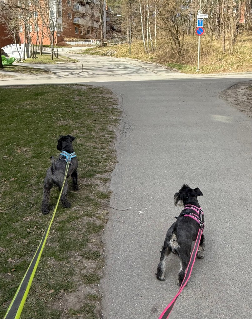 Efter att första morgon turen och frukosten är klar är det skönt att ta ett kombinerat vakt- och vilopaus i fönstret. Solen värmer så skönt och vi njuter innan vi ger oss ut på söndagspromenaden.