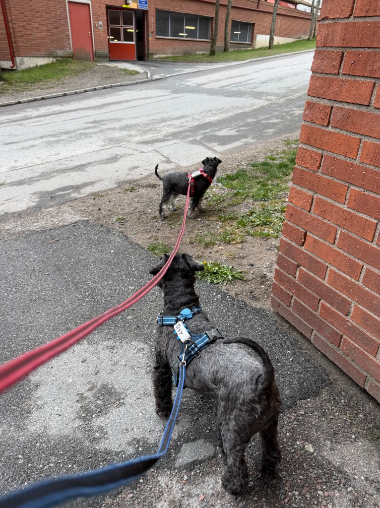 Larm… larm det springer en ekorre i trädet utanför fönstret. Matte väntar på att de kala grenarna skall täckas av löv så korren inte syns så tydligt. Matte är tråkig.
