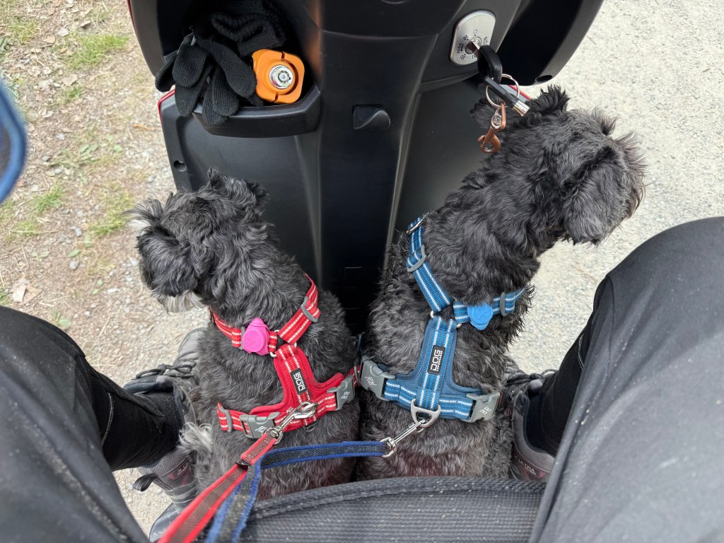 Vi satte oss bredvid varandra och det gick bra, vi fick faktiskt plats båda två. Matte har fötterna som skydd så vi inte ramlar av. Du har lite stora fötter matte.