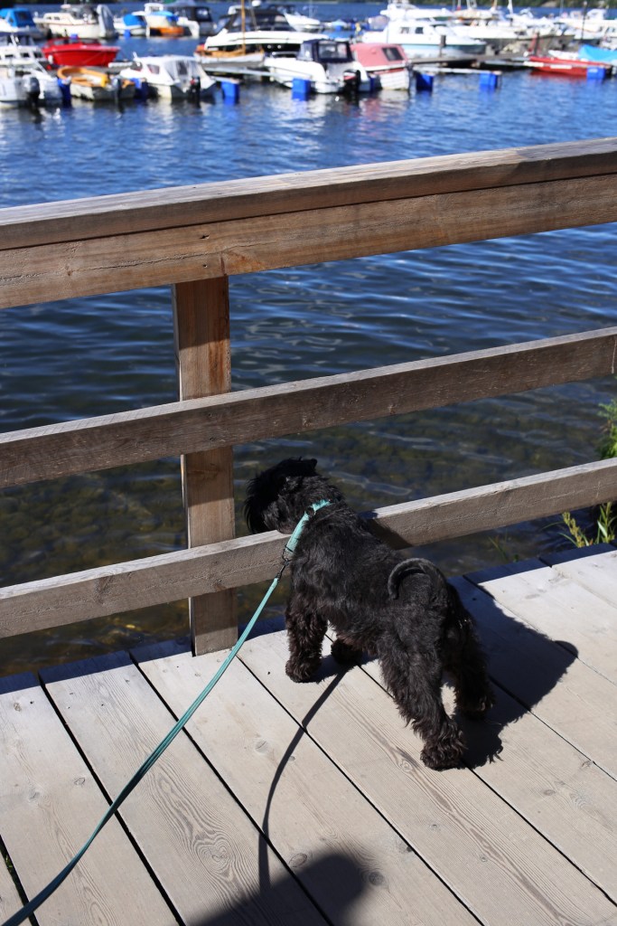 Fredag och vi är på Klovsten. Helena och M städar upp i hundpolen inför morgondagens träff sen går vi till badplatsen. Troy hittade en synnerligen smaskig pinne han ”gömde” på borden.