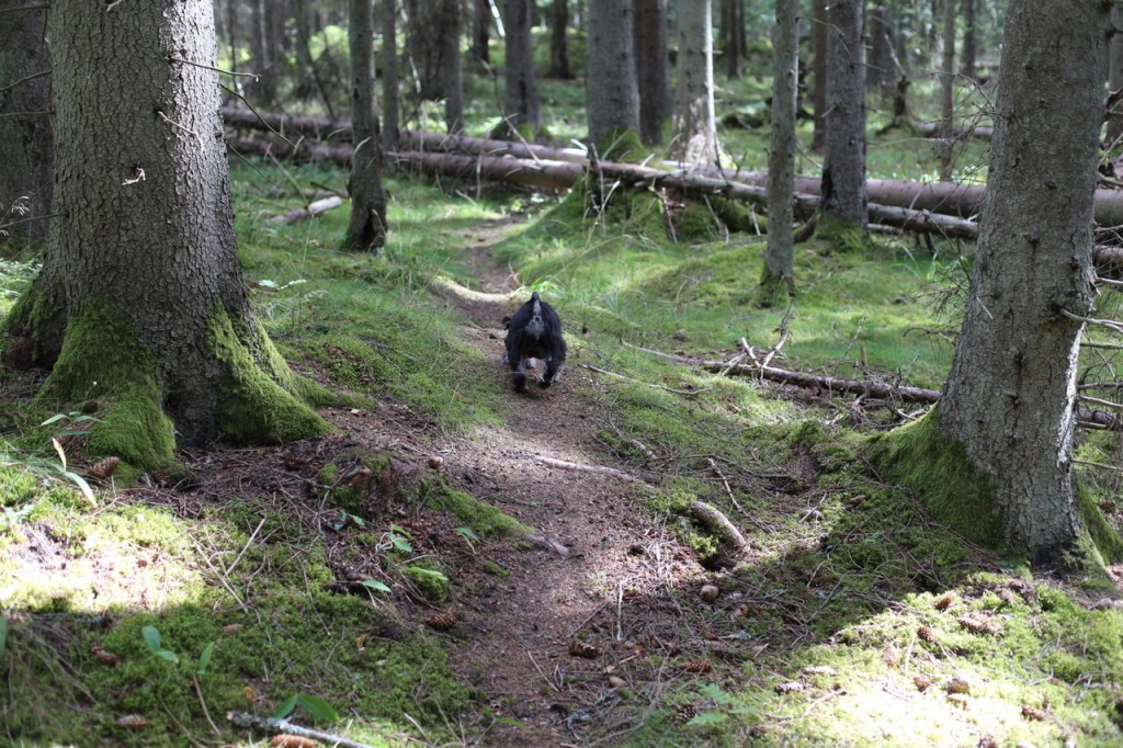 När man får springa på fri tass och dessutom leda vägen genom skogen blir man full av frön. Tyvärr väntar nog kamning när vi kommer hem. M gillar inte att vi ser ut som vilda skogshundar men kul har vi!