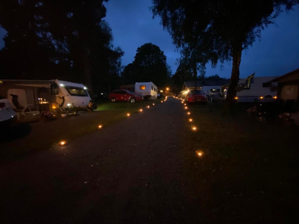 I kväll skall vi ha picknick med grannarna på campingen. Vi sitter på gräsmattan och tvåbeningarna lyssnar på musiken uppifrån restaurangen. M gör massa goda saker som vi skall äta där. Vi har tagit med oss saker att sitta på och det är jätte trevligt med alla kompisar som kom. Tyvärr fick vi inte undersöka alla kassar som kompisarna hade med, det luktar jättegott på håll.