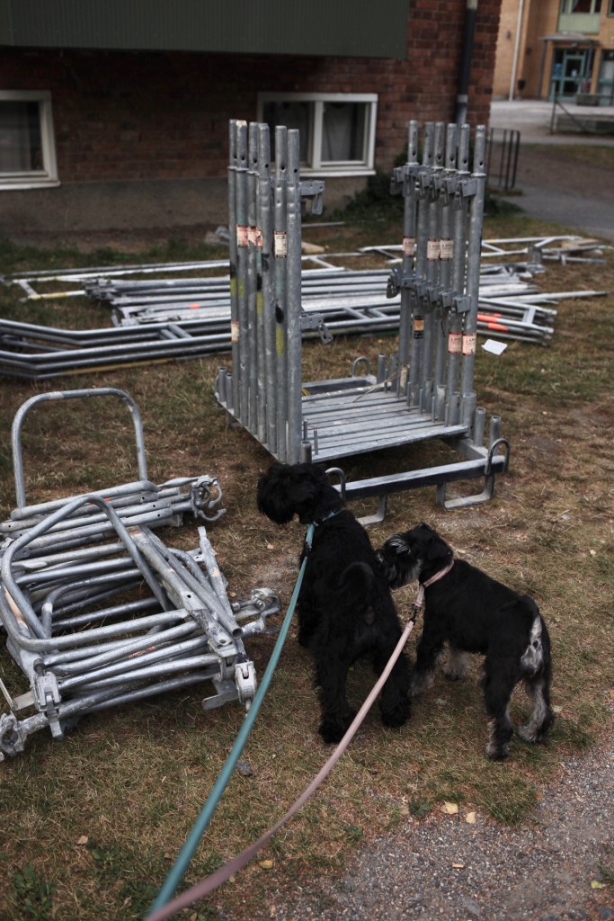 Vår matte, Rossos matte och Helena tömde poolen och skurade bort sanden. Avrinningen vi hjälpte Tommy att fixa fungerade perfekt! Allt Skulle vara klart innan alla vovvarna kom det var därför vi skulle vara lite tidigare på Klovsten.