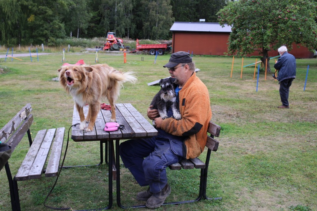Idag var husse med till hundträffen. Jag var väldigt glad över det och satt en stund i hans knä. Ingen annan hund (utom) Troy fick komma nära. Min husse!