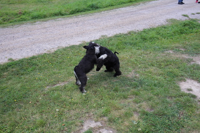 Tjoho full fart på ängen vi kutar så att tungorna hänger som långa slipsar. Detta är livet, underbart väder, lagom temperatur och solsken och flockspring i lite snuzzefnatt stil.