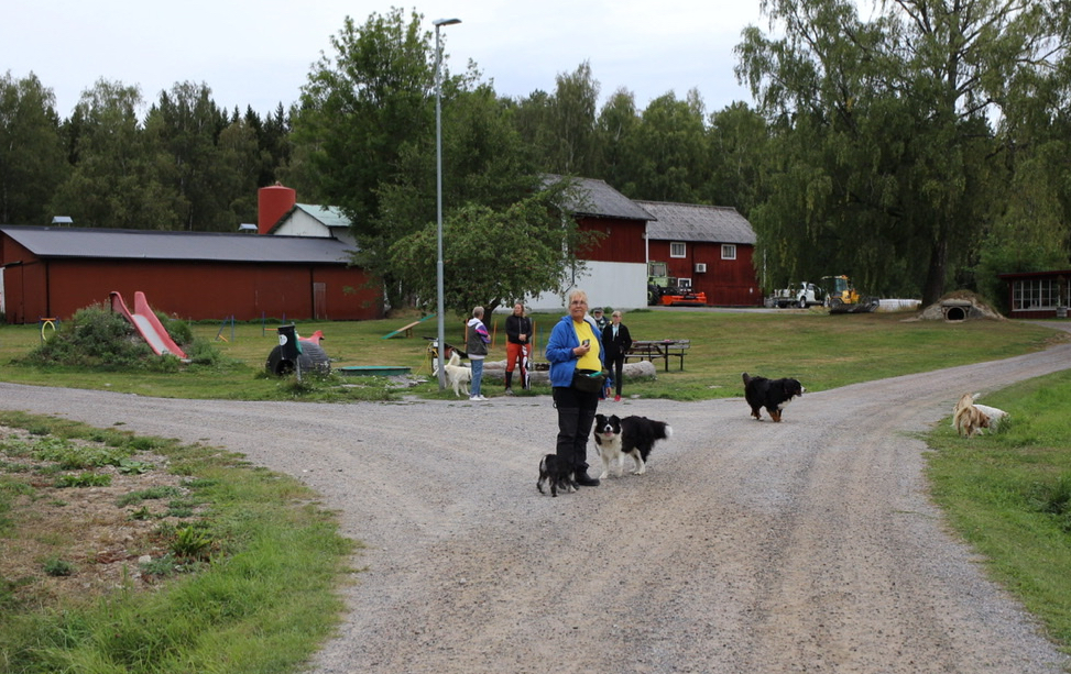Vi åkte till hundträffen lite tidigare än vanligt för M och Helena hade bestämt tid för de skulle göra något innan träffen börjar. När vi kom dit såg vi att Basse satt utanför gården och väntade på att Helena och Wilma skulle komma.