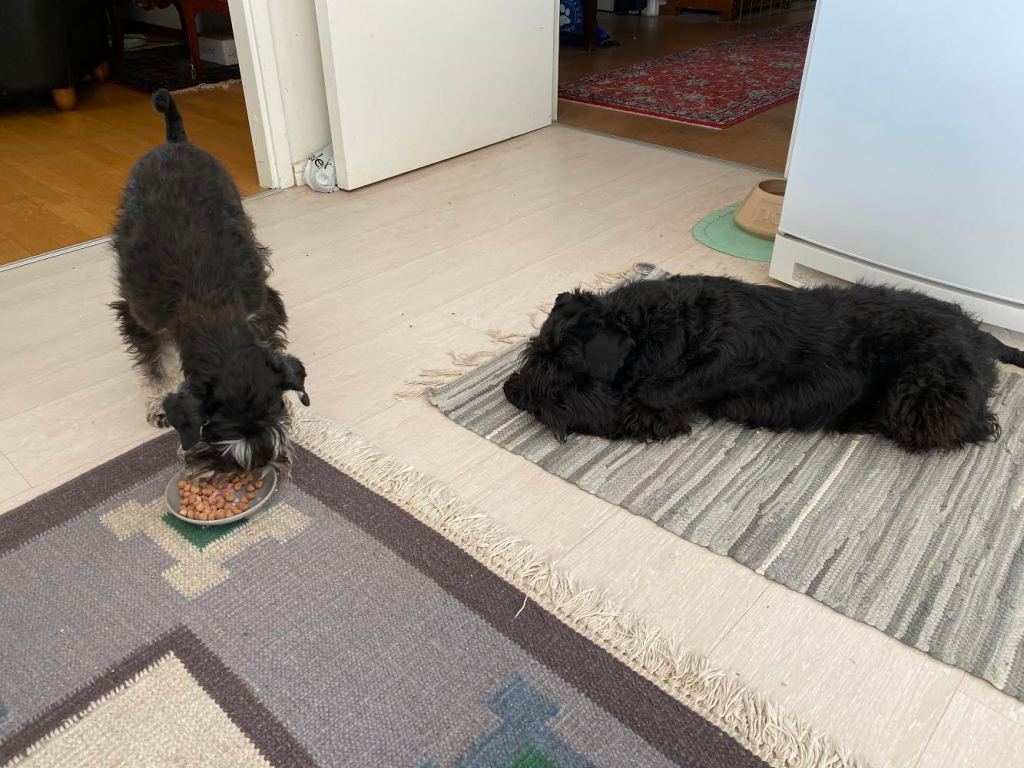 Lördag och alldeles för hett ute. Vi klarade av promenaden rätt tidigt och sen orkade vi inte mer. Att ligga på kylmattorna är det enda rätta. Vid tvåtiden kved M att jag klarar inte detta längre, det är nästan 30˚ 🤯. Vi gick in i vagnen och startade AC:n. Nu ligger vi här inne, jag under soffbordet och Troy på ”hopp upp i sängarna puffarna” med en kyldyna. Vi njuter av svalkan i vagnen, 22˚ är rätt ok så vi blir kvar här inne ett tag till.