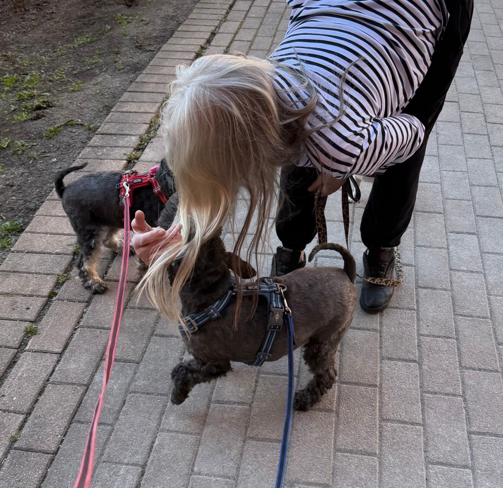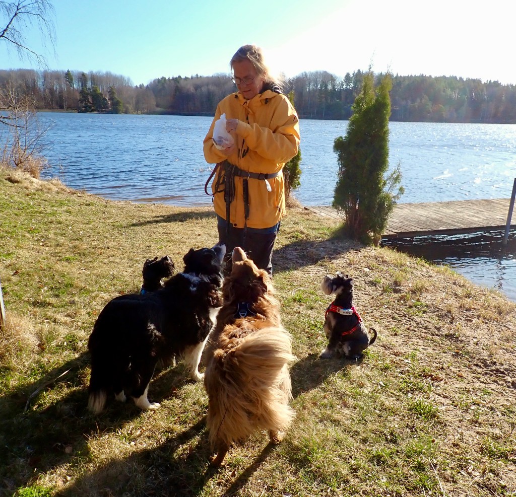 Troy och Basse besökte omedelbart lerdiket för tasstramp. Det gick så fort att matte inte han med med att ta en bild. Wilma och Besse hade nyligen fyllt år så vi blev bjudna på födelsedagsben en liten efterfest.