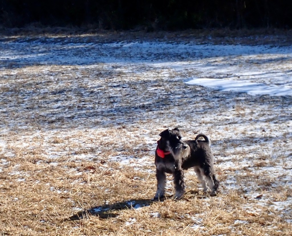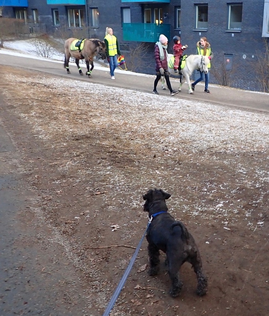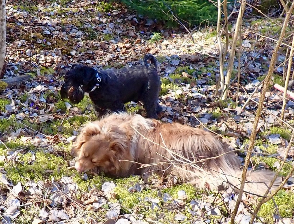 Basse hittade ett underbart vintermarinerat revben. Troy stod en stund och tittade på Basse medans han gnagde lite. Som den kompis Basse är lämnade han över benet till Troy efter en stund.