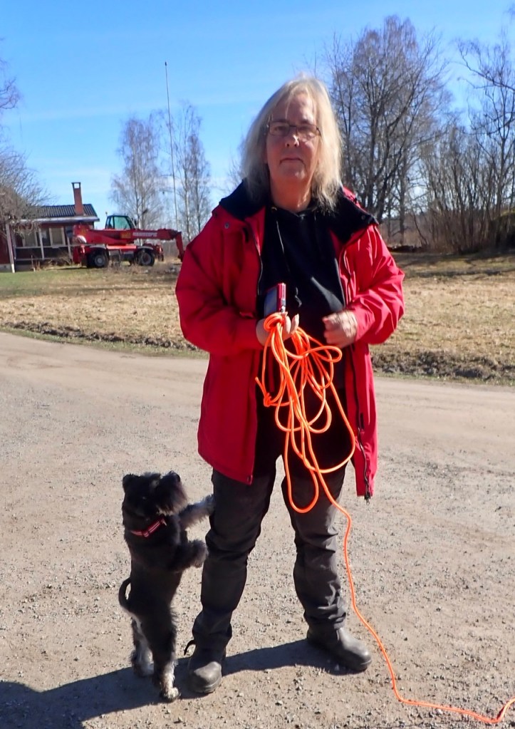 Söndag och dags för hundträff på Klovsten. Kommer du då matte skynda dig, alla är nog där redan, skynda på nu. Äntligen blir hon klar och vi har fått på oss halsbanden med GPS.