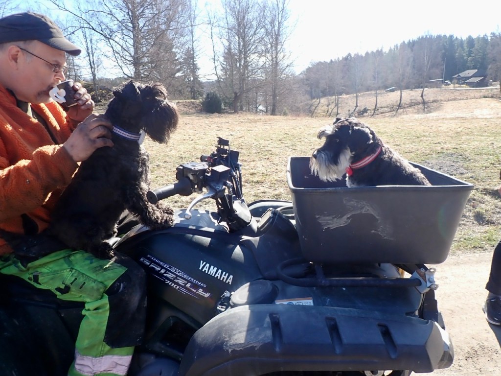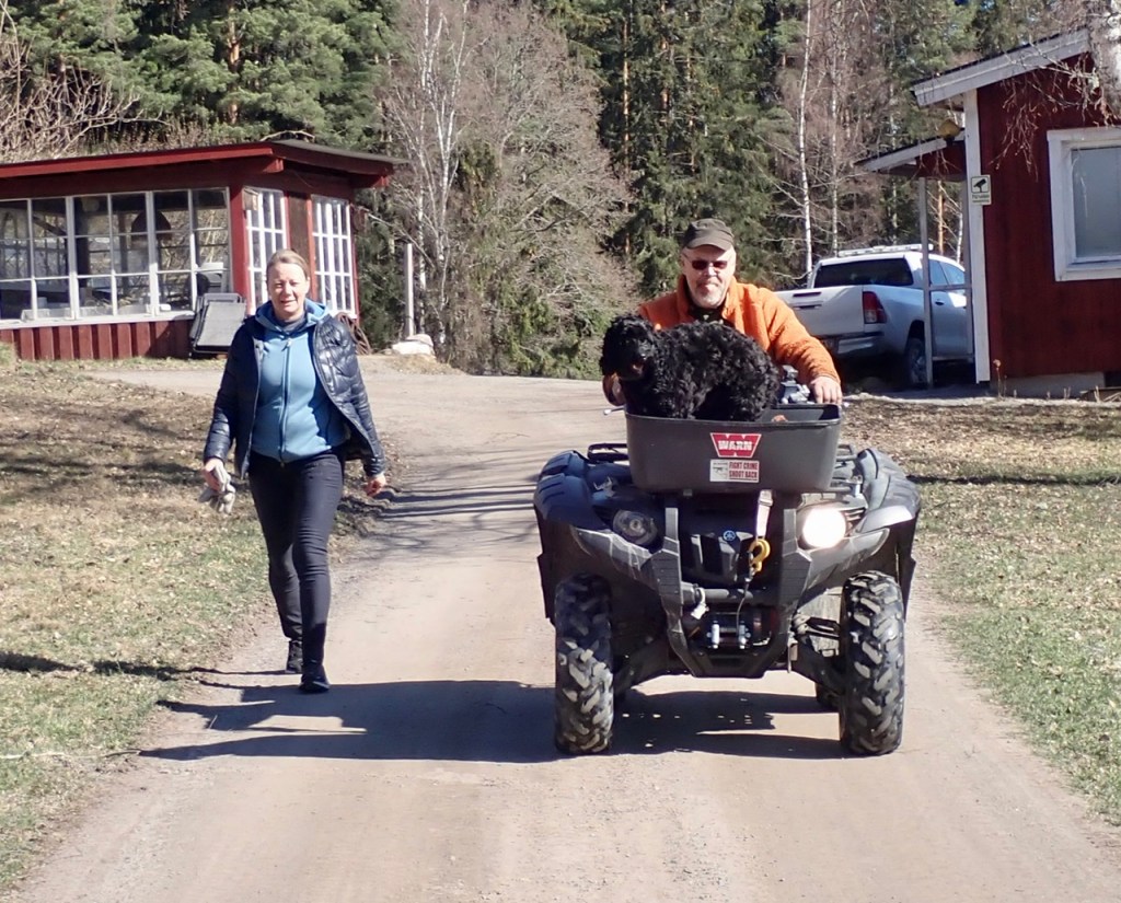 Några hundar drog iväg till badstranden bakom Tommys hus. De blev hämtade av sina mattar och lilla Rosso fick åka fyrhjuling tillbaka till träffen. Flera av dem hade våt päls så de hade nog badat.