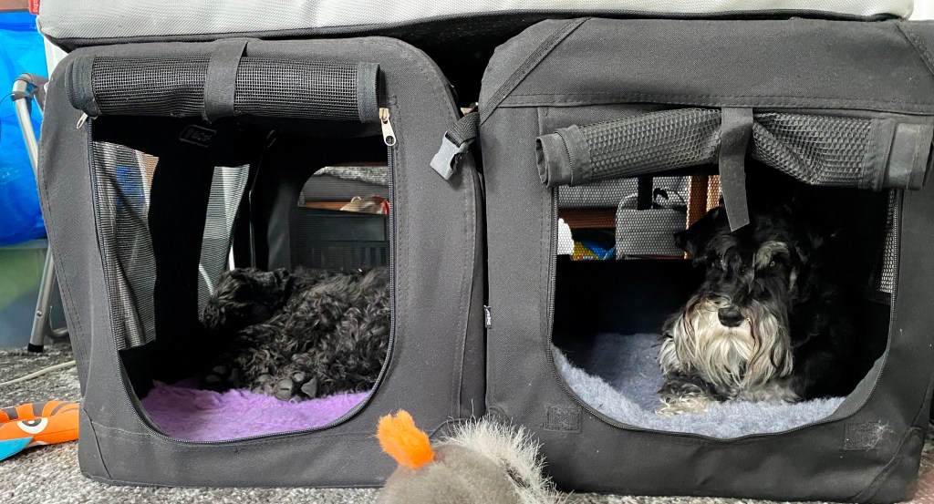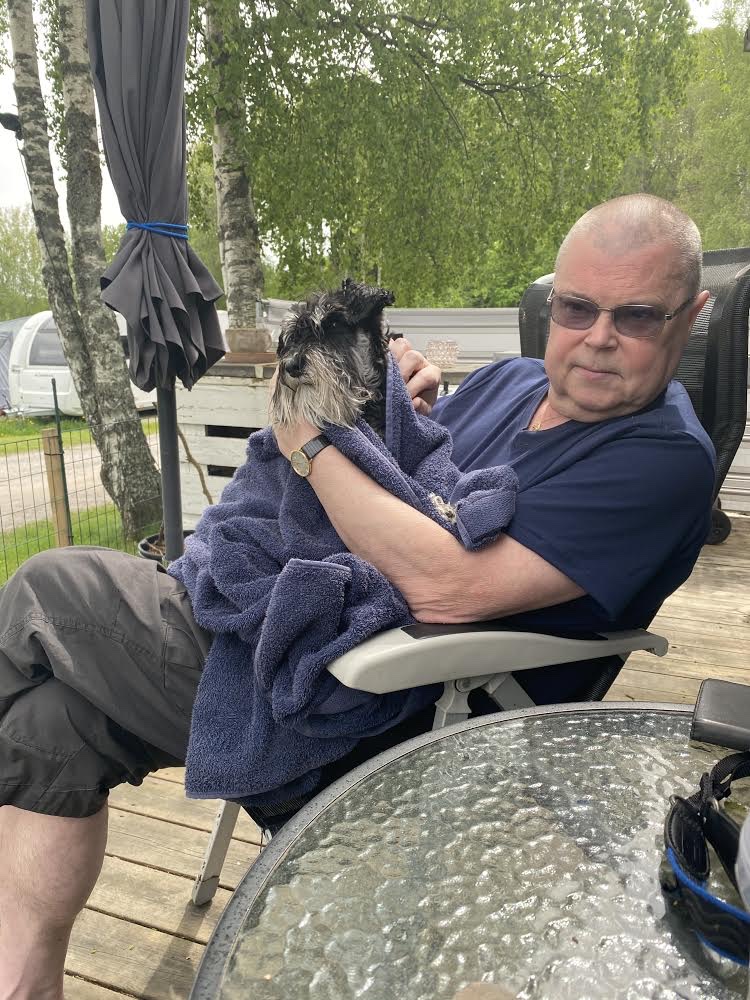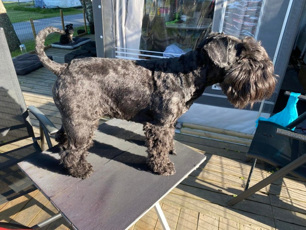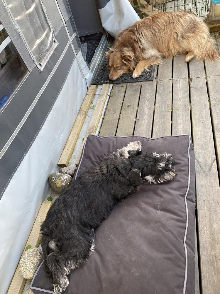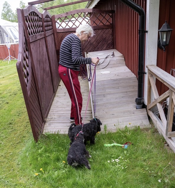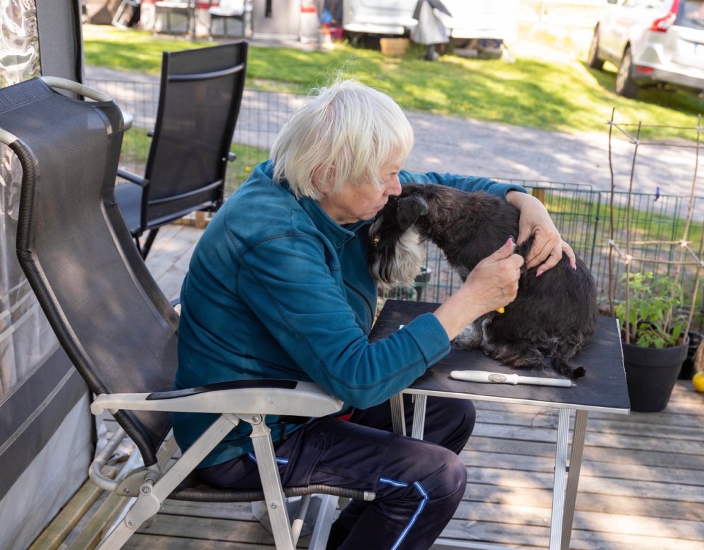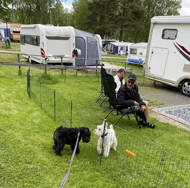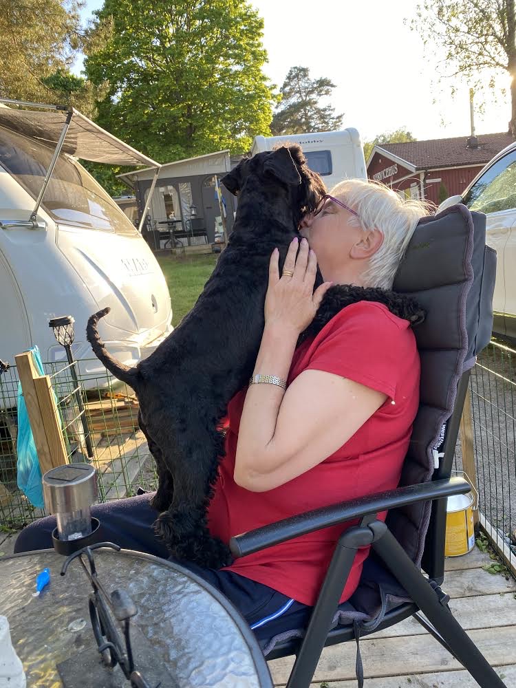 På campingen finns många goda grannar! Nisse i vagnen tvärs över vägen är en väldigt god vän till oss. Han vet exakt var Troy gillar att bli kliad. Jag pussas mest.