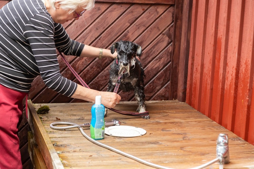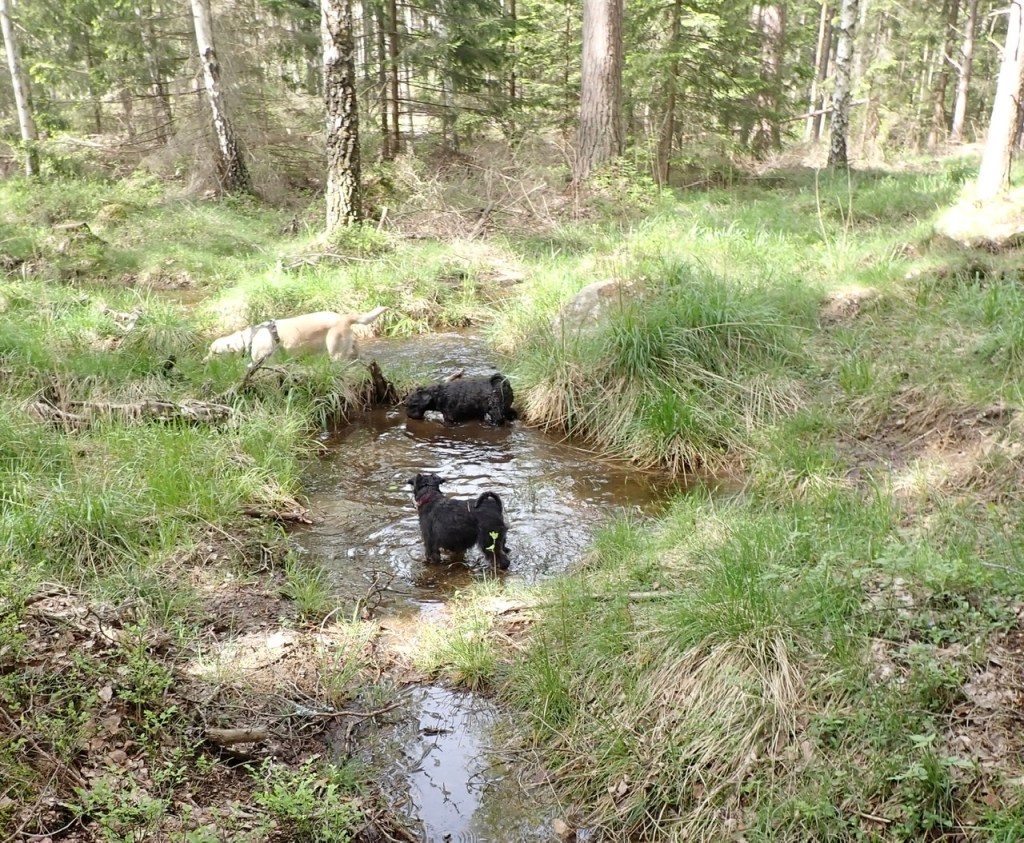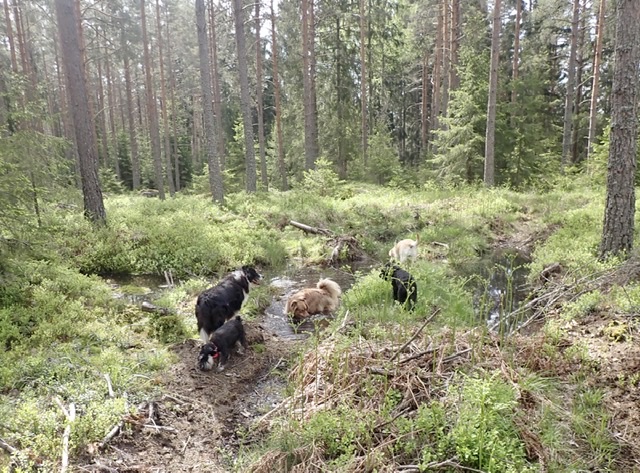 MOHA! säger matte, hur kan du frysa så du skakar när det är 29 g varmt? Jaha.. vad tror du? Har men varit i en kall sjö och simmat blir det så! Kall sjö säger matte det är ju för tusan hakar mer än 24 grader varmt i vattnet!