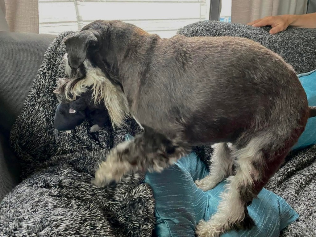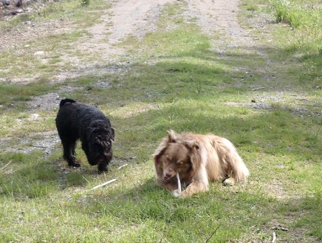 När Nisse går förbi vår tomt ropar Troy på honom och då brukar han komma för att ägna en liten stund åt att leka med honom.