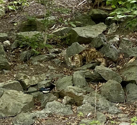 Jag tar in min godbit i kojan för jag vill vara ifred med mitt revben! Sätter mig strategiskt i kojans öppning så ingen annan kan komma in.