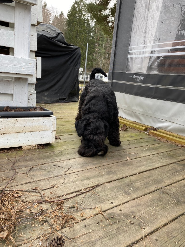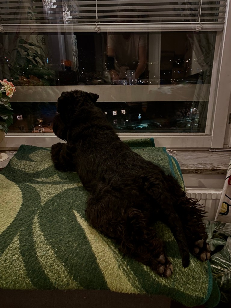 Lördag morgon och vi väntar in tiden för att gå på hundträffen. Jag håller lite extra koll från en extra bra utkiksplats.