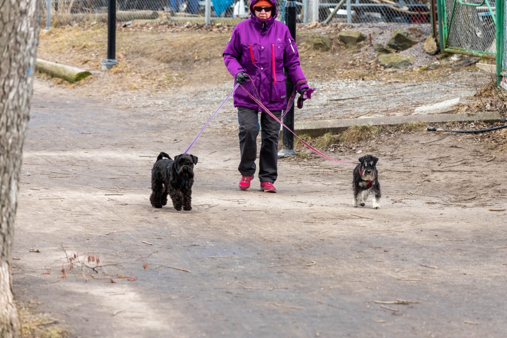 Äntligen, äntligen på fria tassar. Vi spanar in omgivningen innan vi kutar loss!