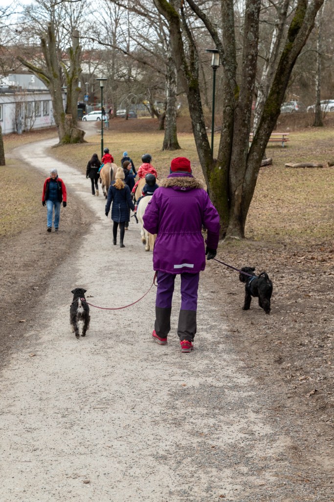 Här kommer parklekens hästar med människovalpar på ryggen.