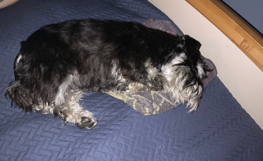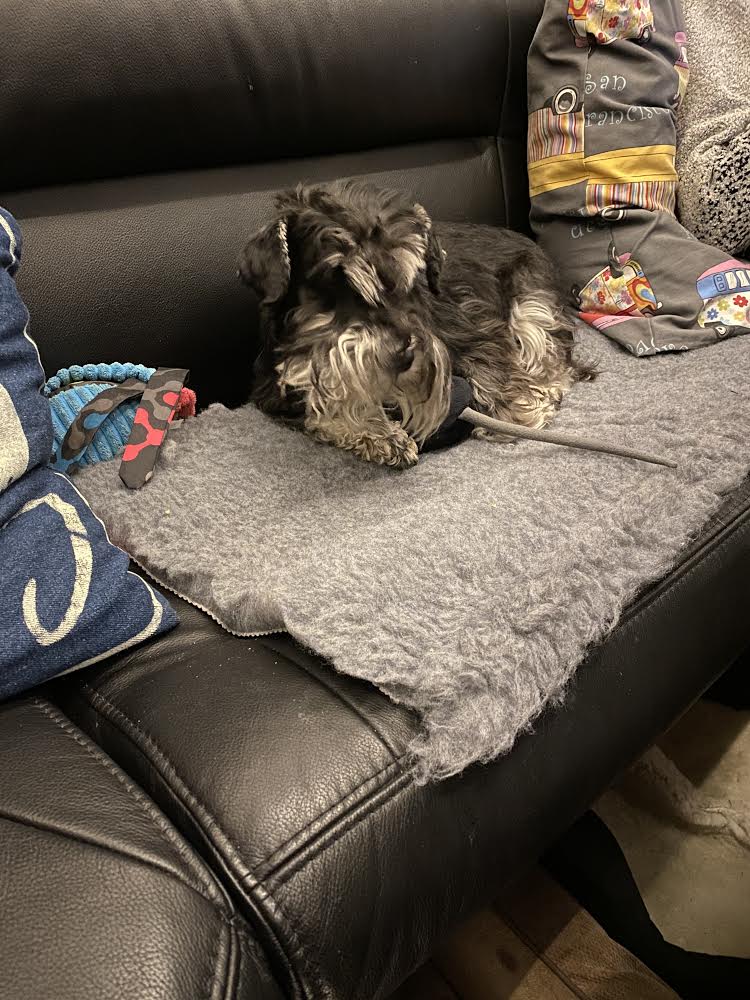 Sen lägger jag honom i soffan på min favoritkudde. Anamma om Troy försöker närma sig då säger jag ifrån ordentligt. Där får han ligga under dagen och jag ser till honom då och då under dagen.