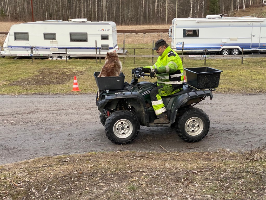 Äntligen nu är det vädret för att vara i vagnen. Vi kan vara på trallen när husse och matte städar ut vintern ur förtältet.