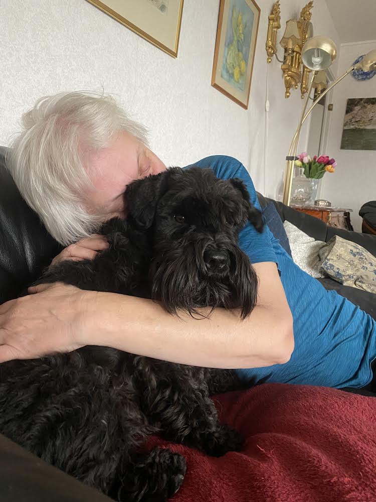 Vi skall hämta Troy som är hos Jannica för att fixa pälsen och det har han mycket av. Vi älskar henne och ylar i högan sky för att tala om att vi är här. Ja jag får väl erkänna att han blev stilig.