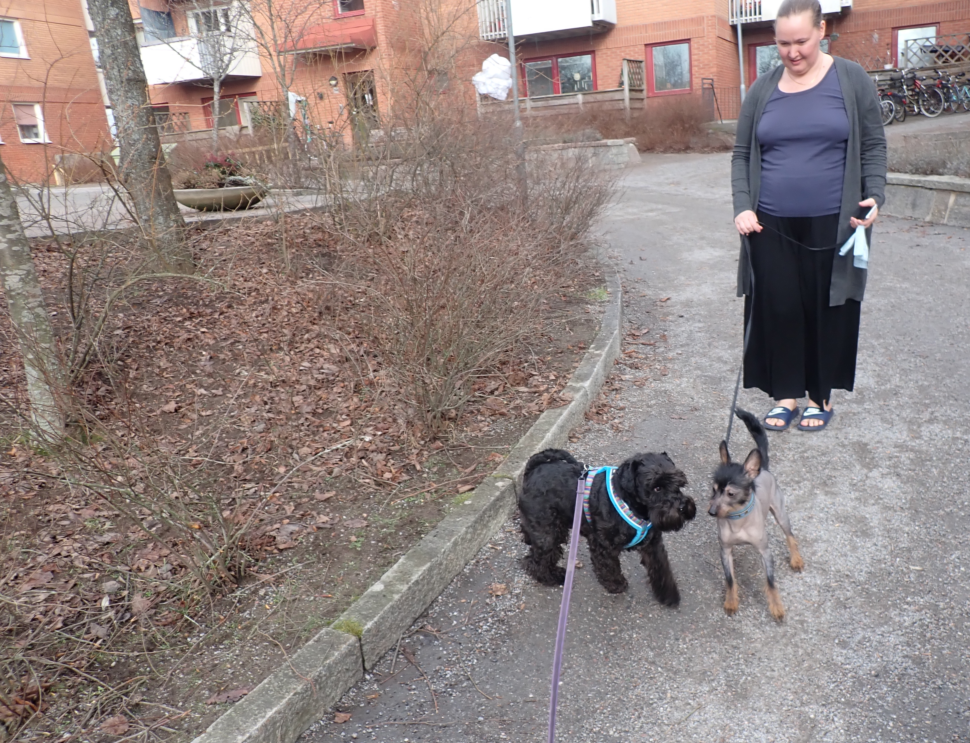 På en av promenaderna träffade vi Bosse och Bertil som var ute med sin husse.