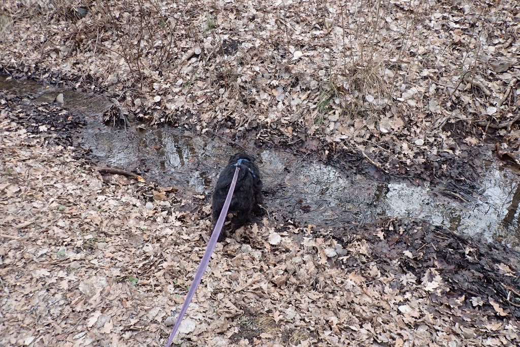 Är det vår nu? Det porlar i diket och Troy måste absolut bada tassarna!