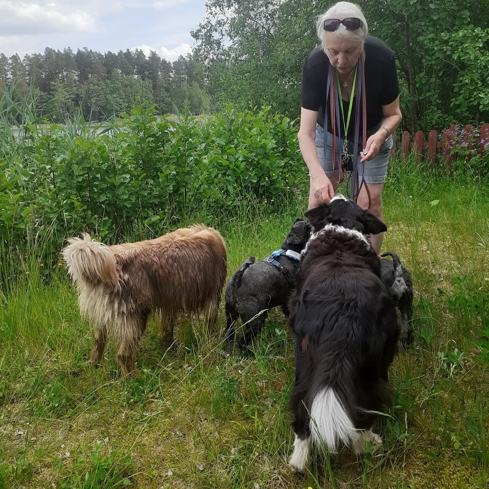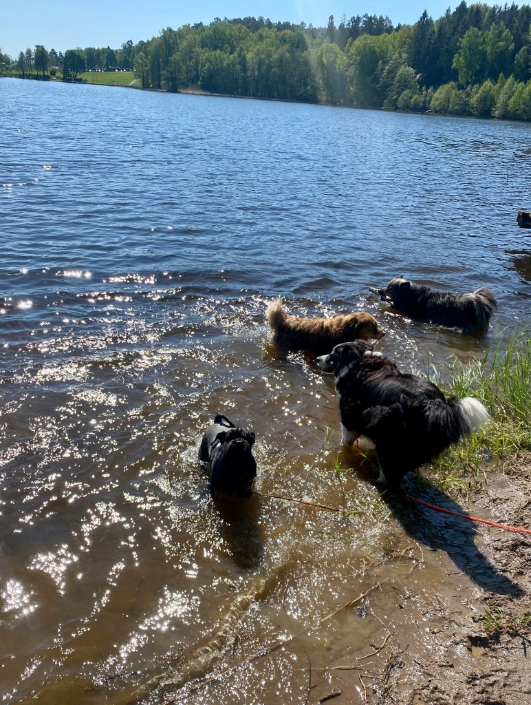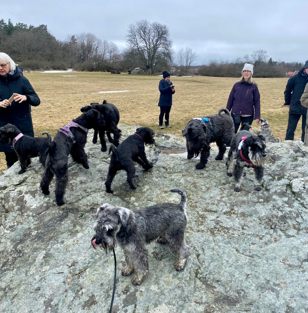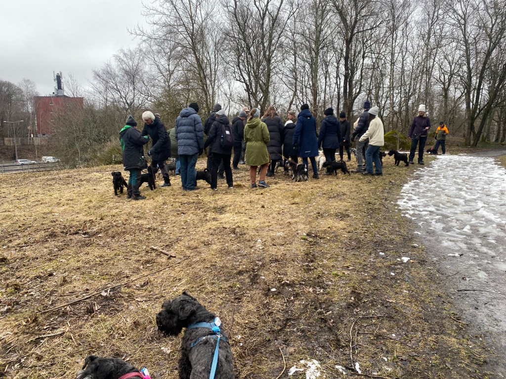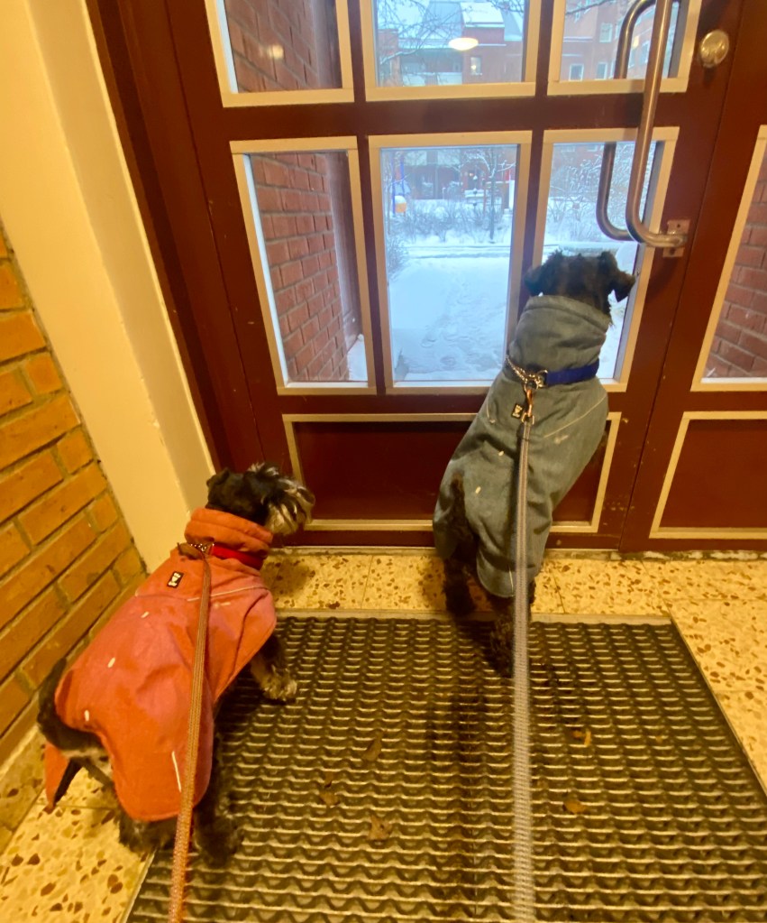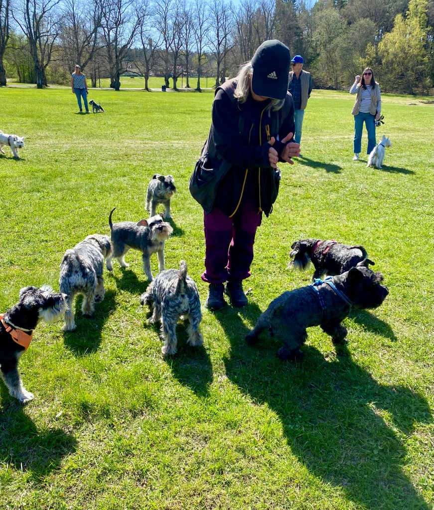 Så var det dags för ett spår. Helena försvann som vanligt och vi koppelfångar stod kvar hos matte. Detta är riktigt fredagsmys köttbitar och pannkakor mums Mumsfilibabba.