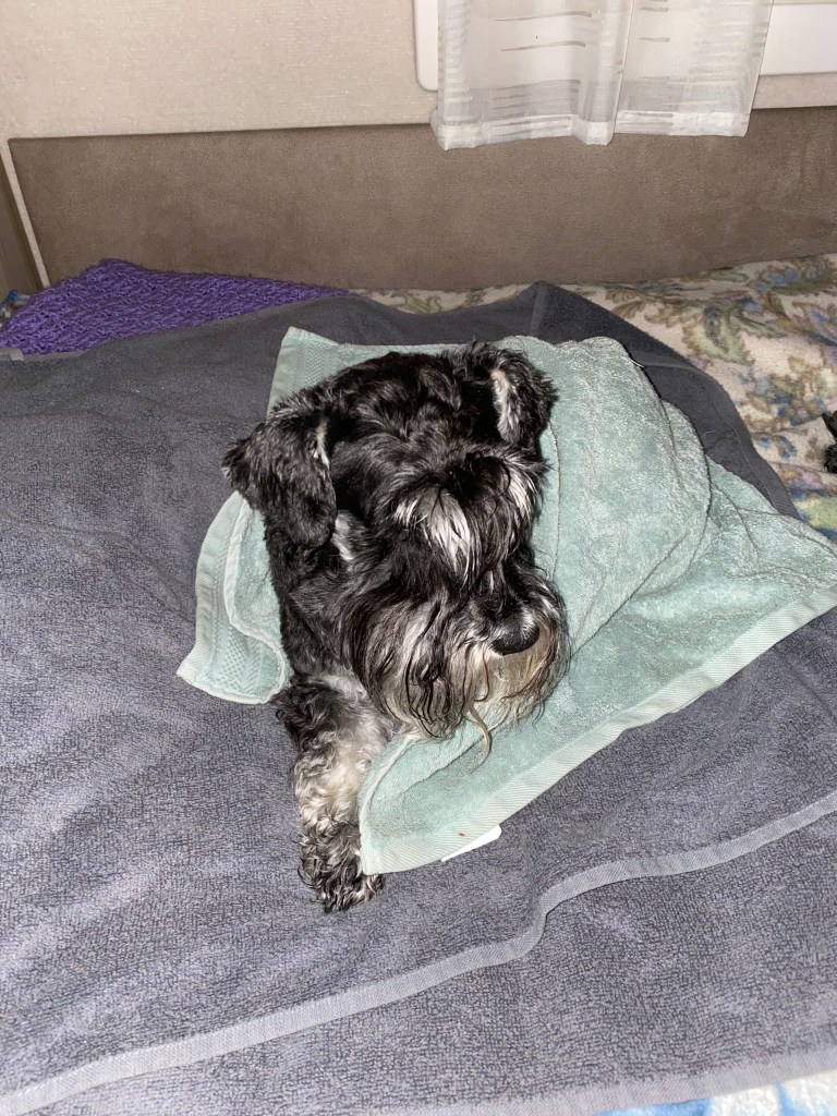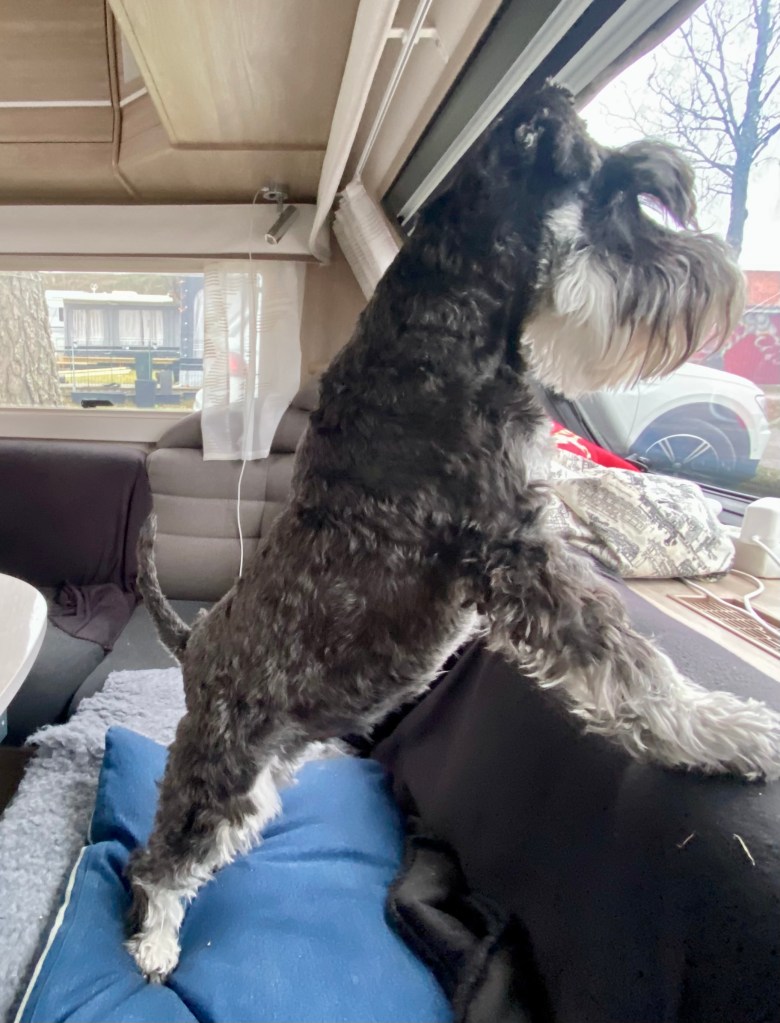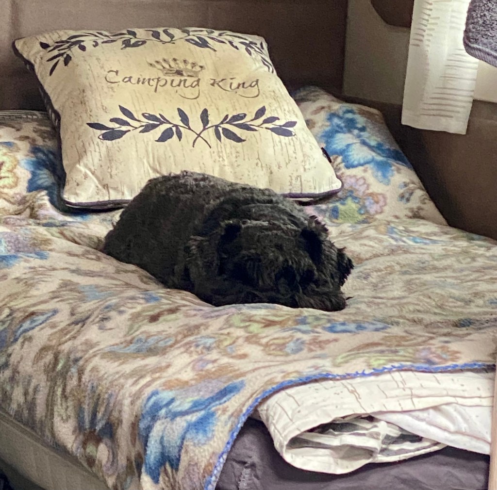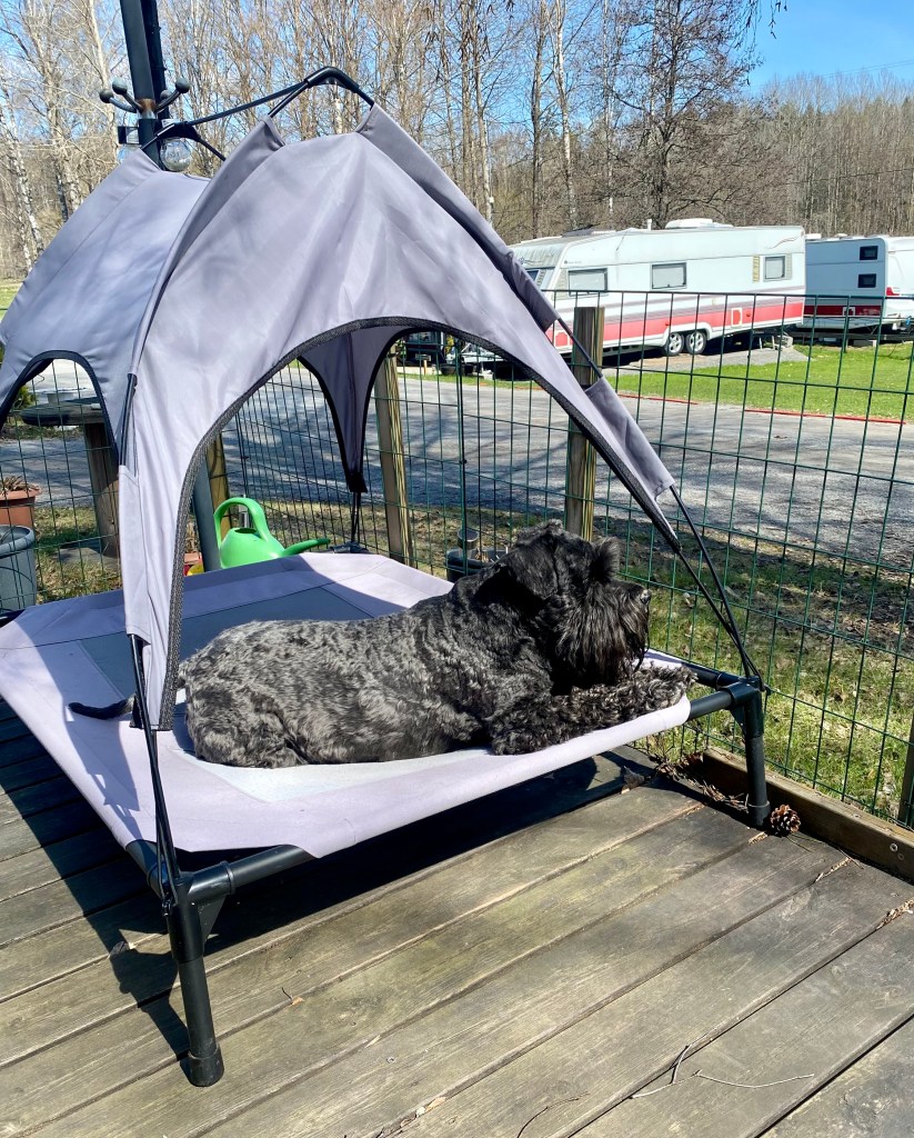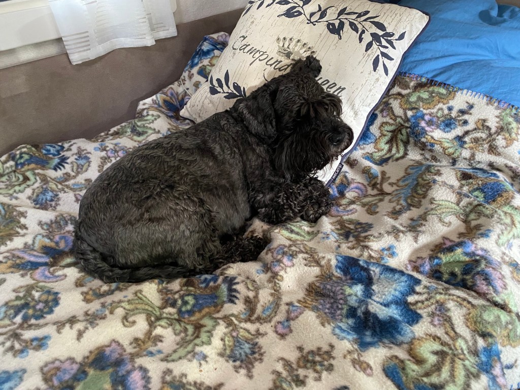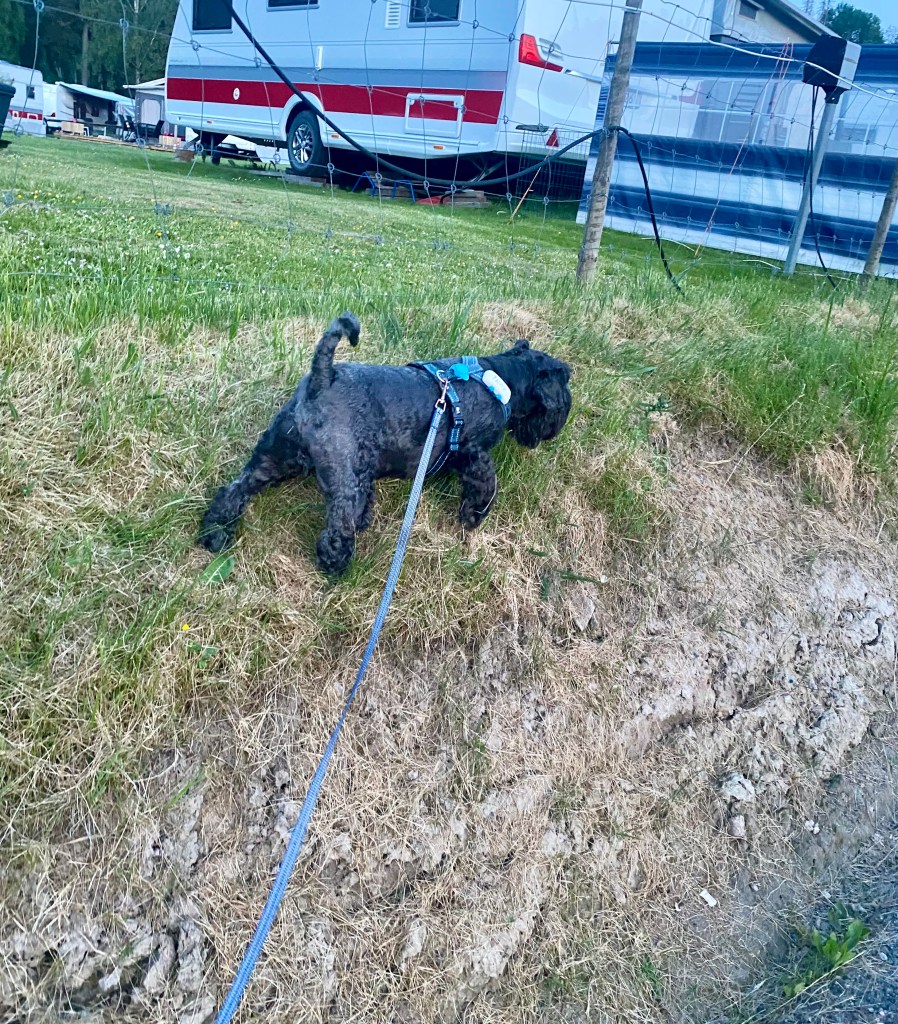 Tillbaka på campingen men det är kallt och efter dagens promenader i regn är man frusen. Nu börjar det regna igen och det håller på så hela eftermiddagen.