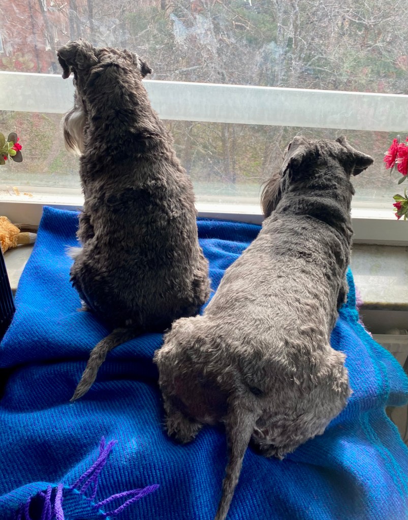 Nu tar vi det lite lugnt efter att ha rusat runt, kollar efter råttor och lekt tafatt.
