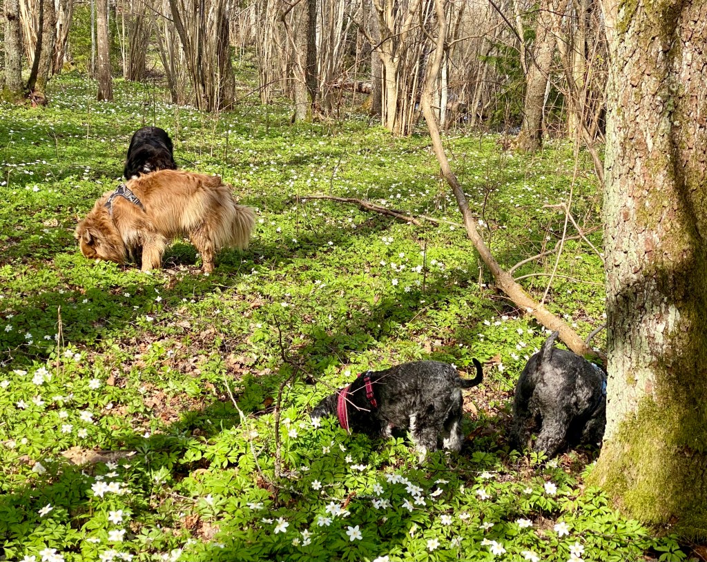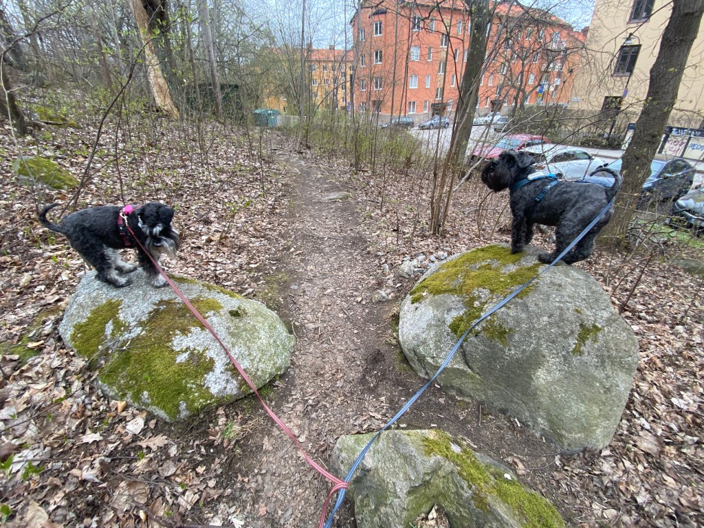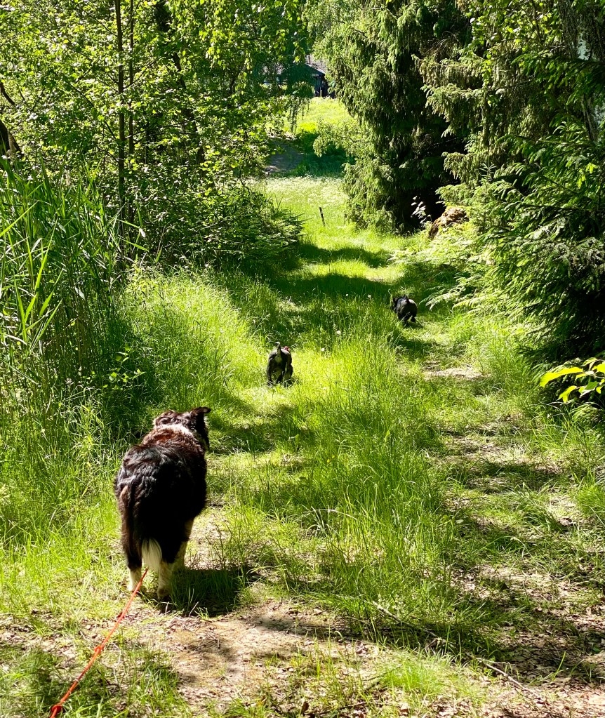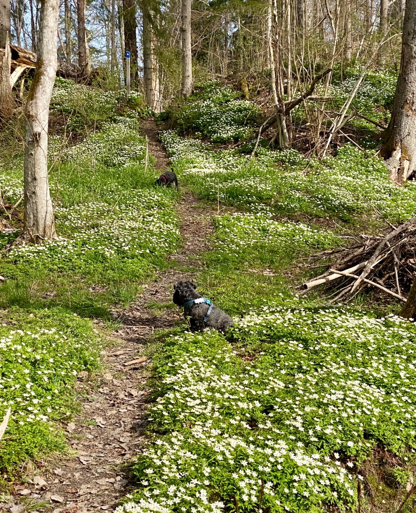 ’Hemma i stan och på promenad längs det matte kallar lilla vägen. Det har verkligen blivit grönt på några få veckor. Det har nyss regnat så vi är ganska ensamma ute.