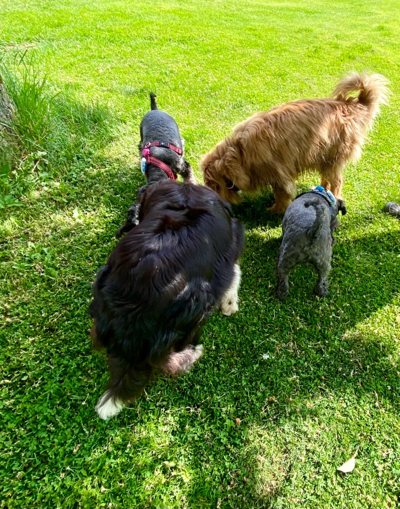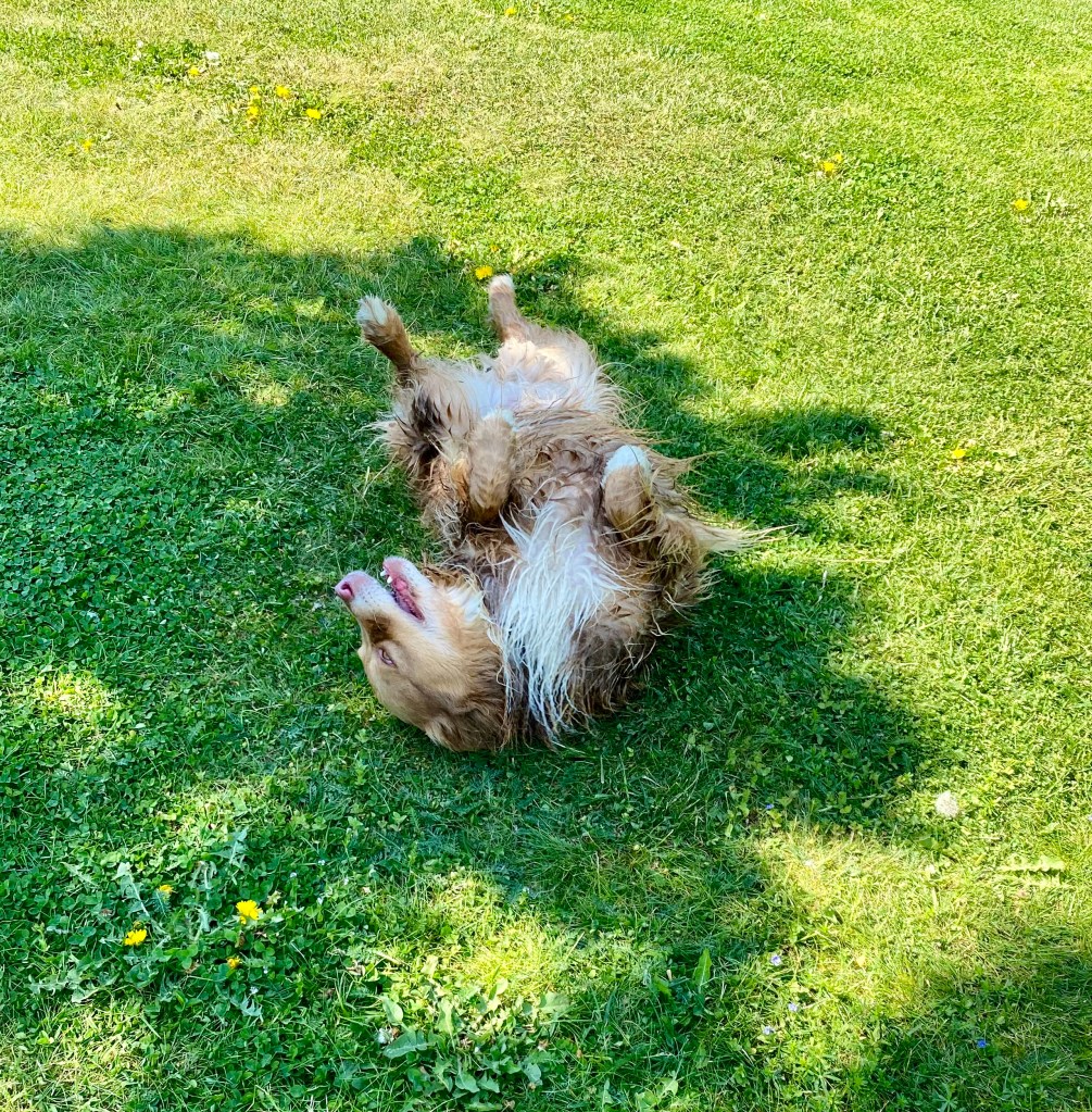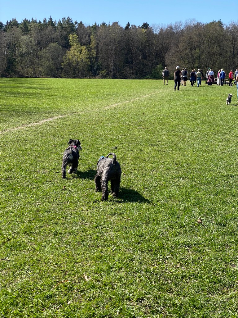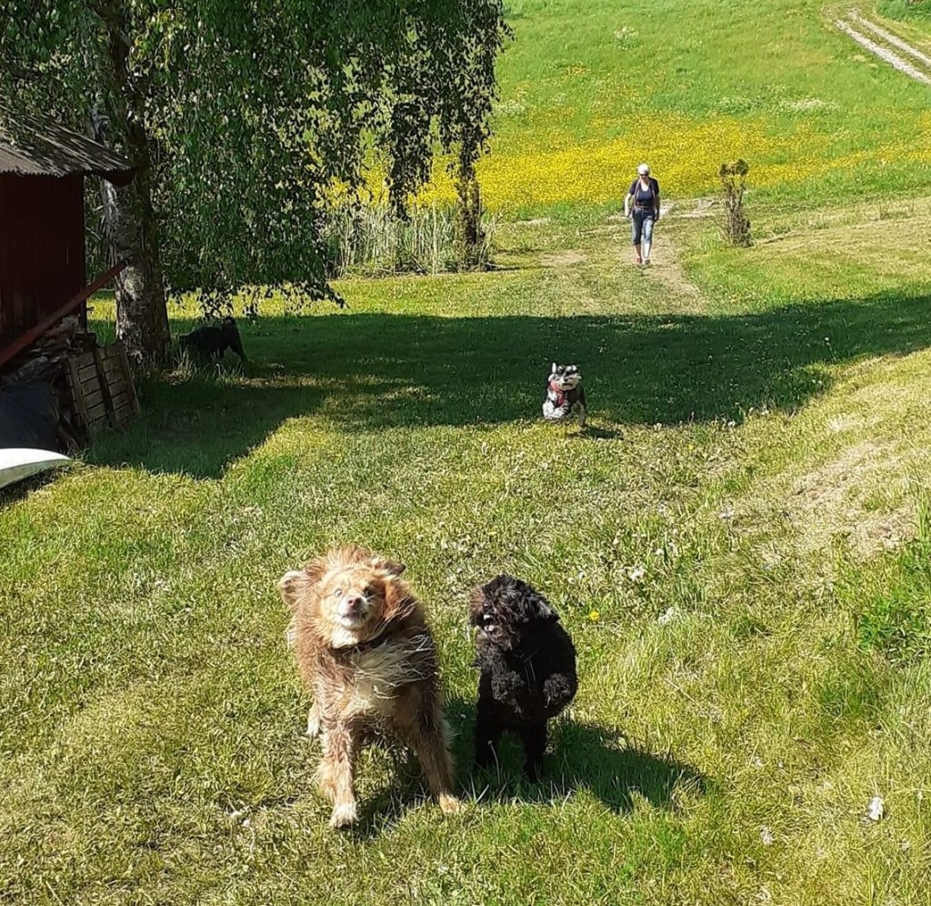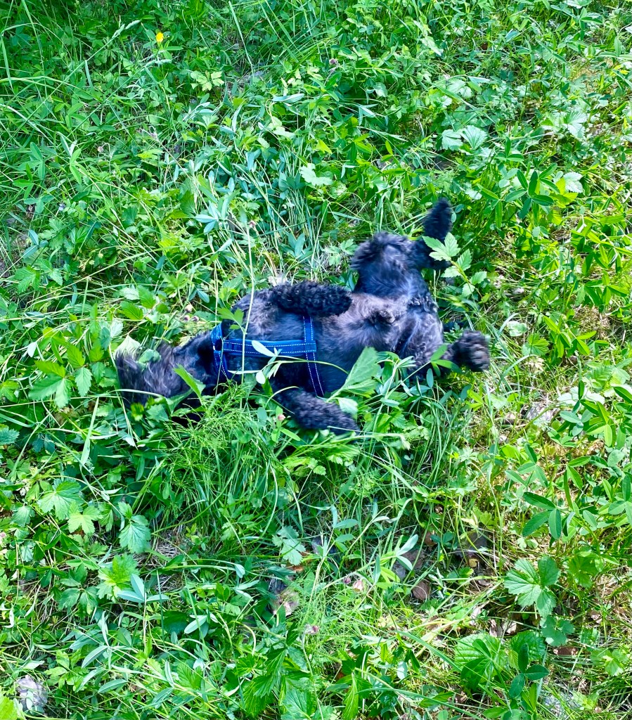 Jösses vad högt gräset var på ängen. Det var jättekul att skuttande rusa fram i med nosen först för att plöja en väg. Kolla Troys öron han kutar så fort att de står rakt upp.