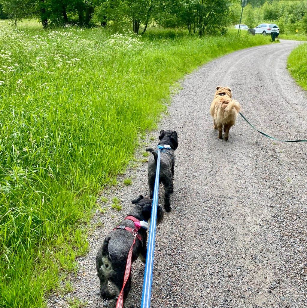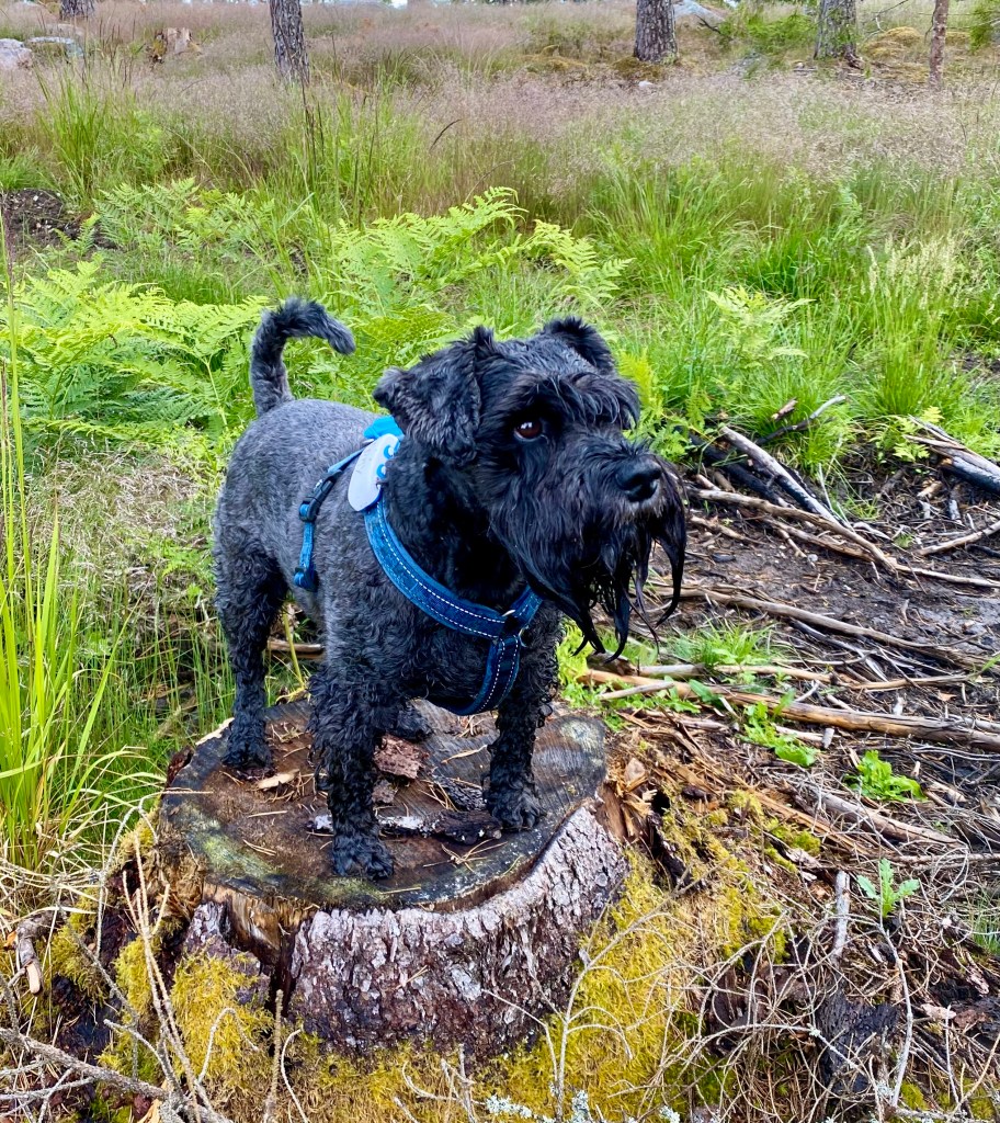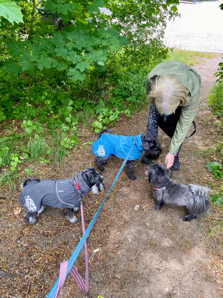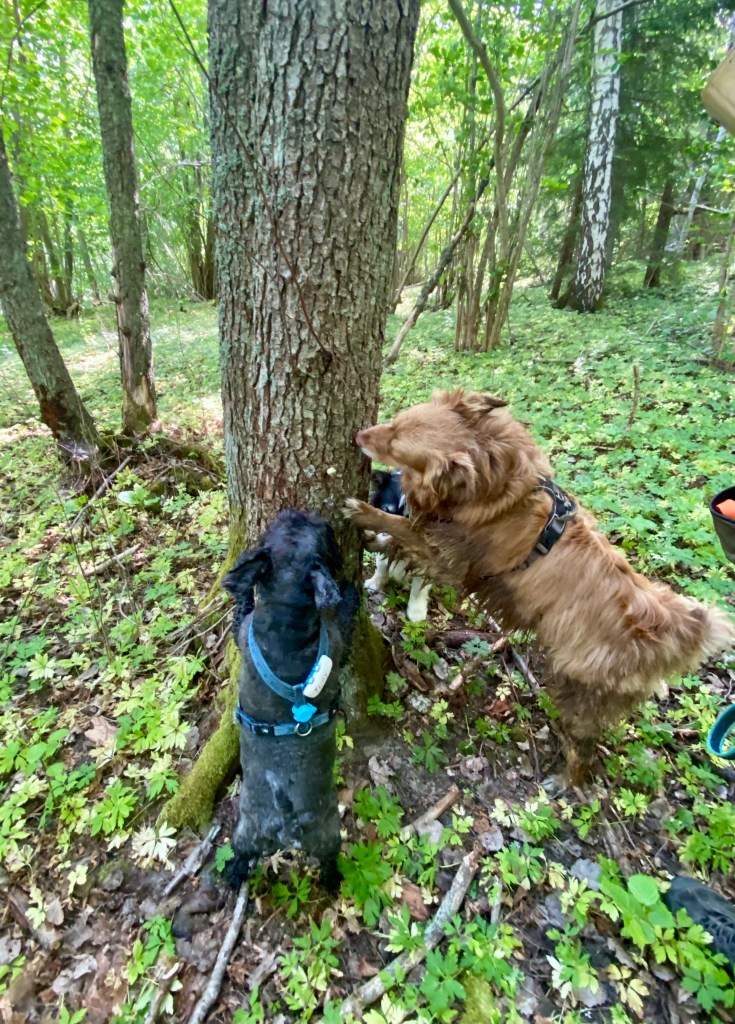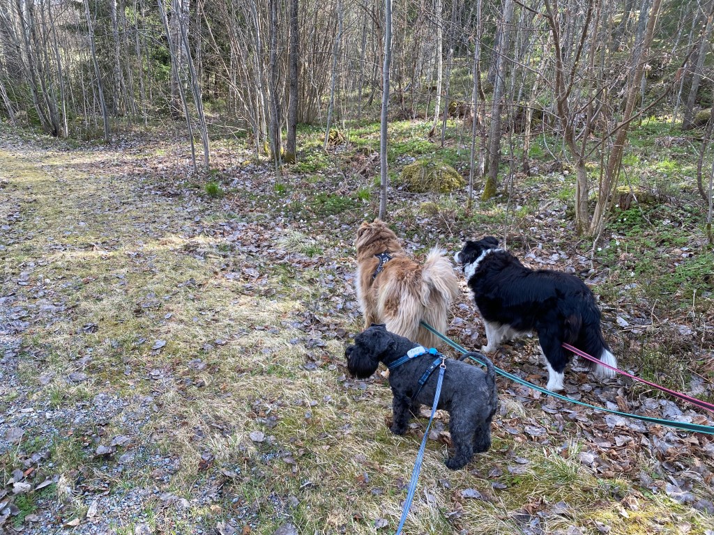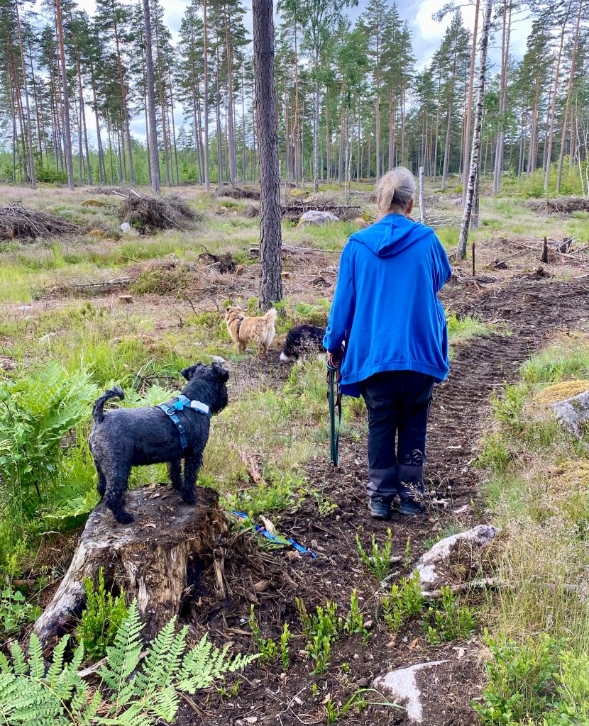 Snälla jag vill ha lite godis matte säger att jag bantar och behöver gå ned några hekto till. Helt onödigt tycker jag. Jo da han fick lite skogspromenad poletter.