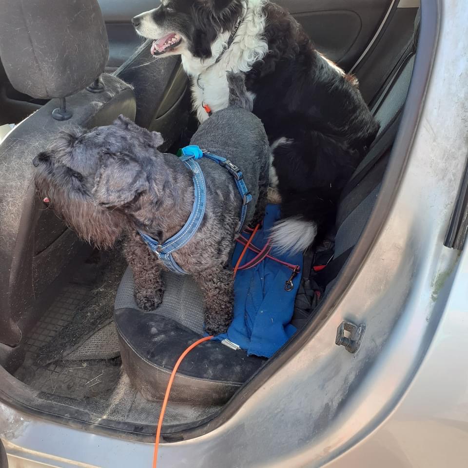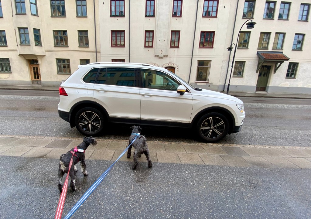 Skynda er nu våra kära mattar det börjar regna. Vi vill in i bilen så skynda på.