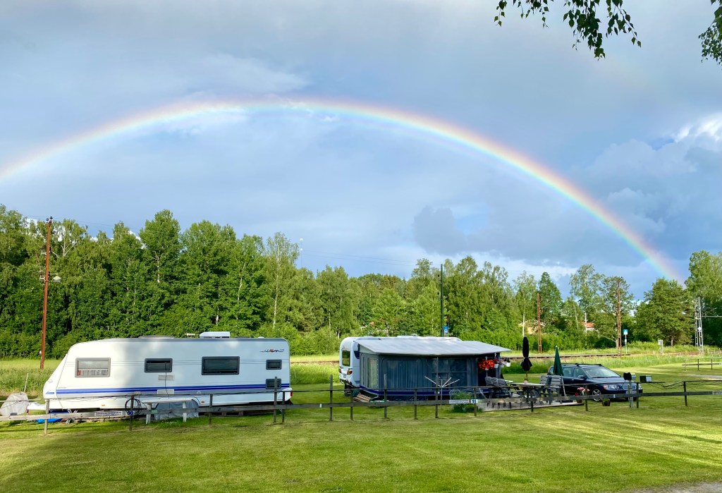 När det sluta ösa ned tittat det fram något konstigt på himlen. Regnbågar är vackra och denna var väldigt tydlig.