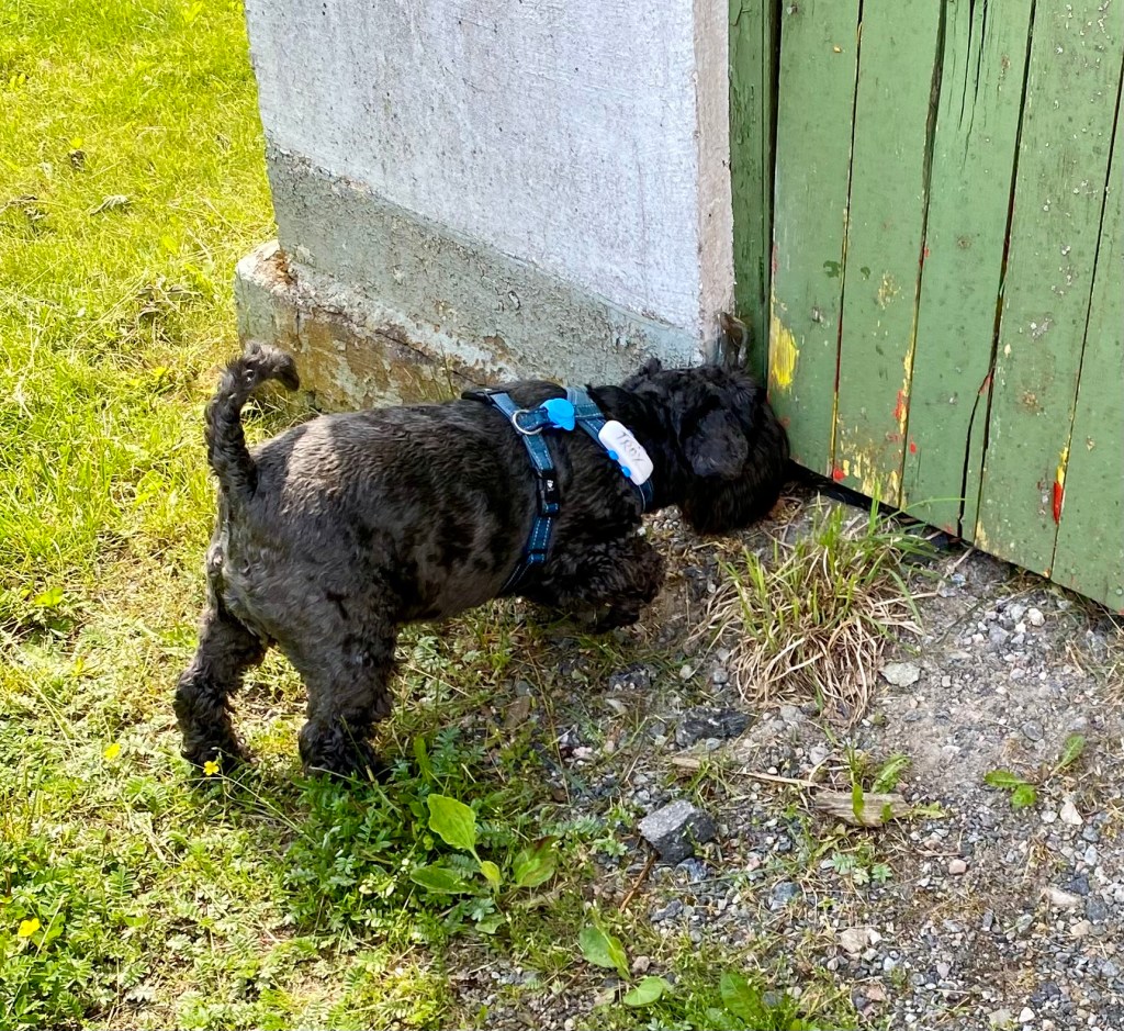 Troy markerar något genom att peka med nosen och lyfta upp höger framben. Råtta säger han definitivt råtta.